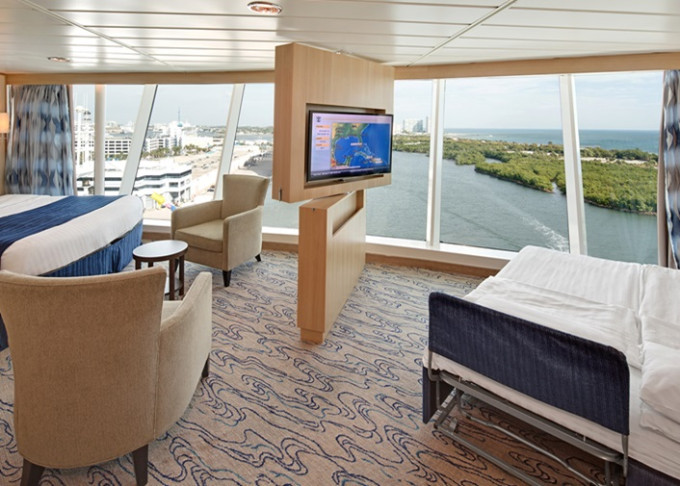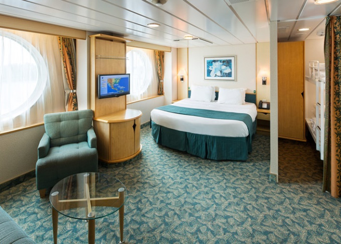 | VP - Ocean View Panoramic Suite (bez balkonu) 38 m². Panoramatické neotevíratelné okna. Výhody Royal Suite Class. 12. paluba. Max 6 osob. | 134 756 Kč 134 756 Kč za osobu | ||