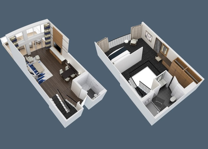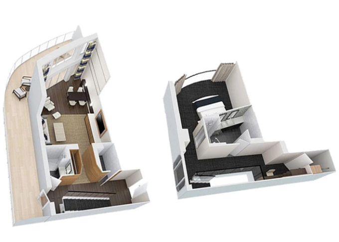 | OL - Owner Loft Suite s balkonem 90 m² / balkon 46 m². 2-podlažní apartmán. Výhody Royal Suite Class. 8. paluba. Max 4 osoby. | 690 037 Kč 345 019 Kč za osobu |