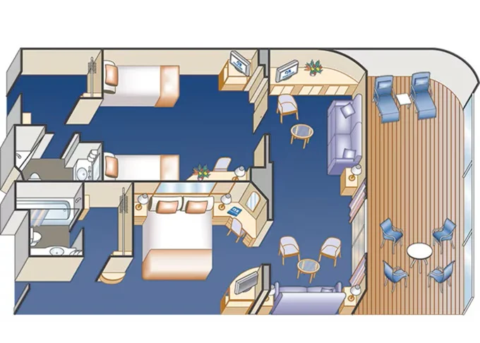 | S8 - Family Suite min 49 m² (včetně balkonu). 2 ložnice. Max 6 osob. Výhody Suite. | 75 607 Kč 37 803 Kč za osobu | ||