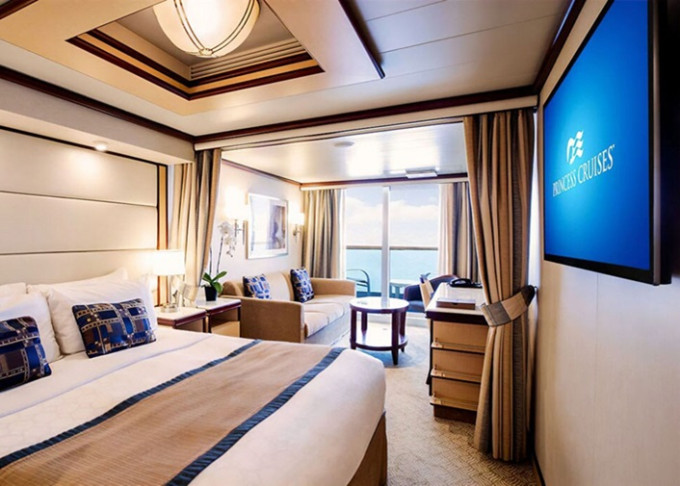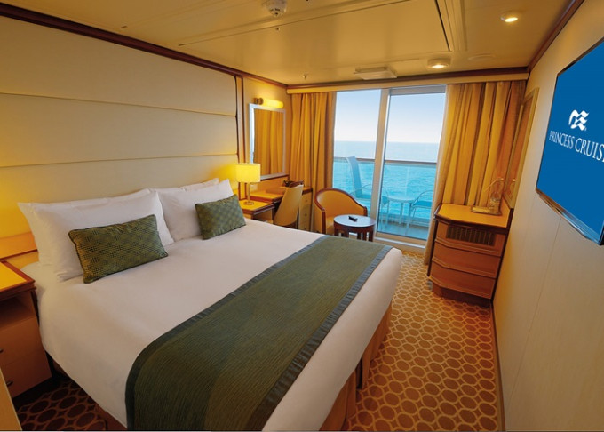 Standardní vybavení kajut: koupelna se sprchou a toaletou, 2 lůžka s možností konfigurace, úložné prostory, minibar, fén, TV, trezor. Balkony je vybaven malým stolkem a 2 židlemi či lehátky.