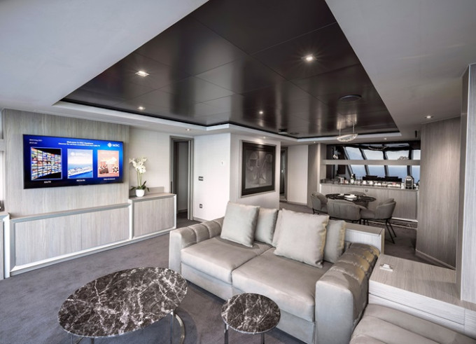 | YC4 - Yacht Club Owner's Suite s vířivkou 93 m² + balkon s vířivkou 25 m². Oddělený obývací pokoj a ložnice, šatník, koupelna s vanou. Max 5 osob. 19. paluba. Cenový model MSC Yacht Club. | 170 041 Kč 56 680 Kč za osobu | ||