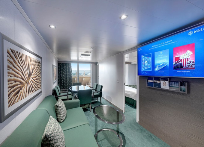 | YC3 - Yacht Club Royal Suite 62 m² + balkon 33 m² s vířivkou. Oddělený obývací pokoj a ložnice, koupelna s vanou, šatník. 16. paluba. Cenový model MSC Yacht Club. | 128 372 Kč 42 791 Kč za osobu |