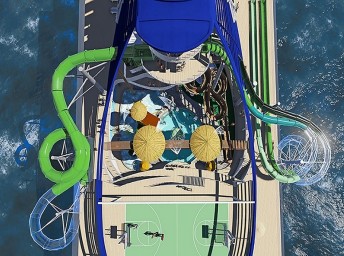 - sportovní aktivity na otevřených palubách (jogging, basketbal, fotbal, tenis), bazény a lehátka
