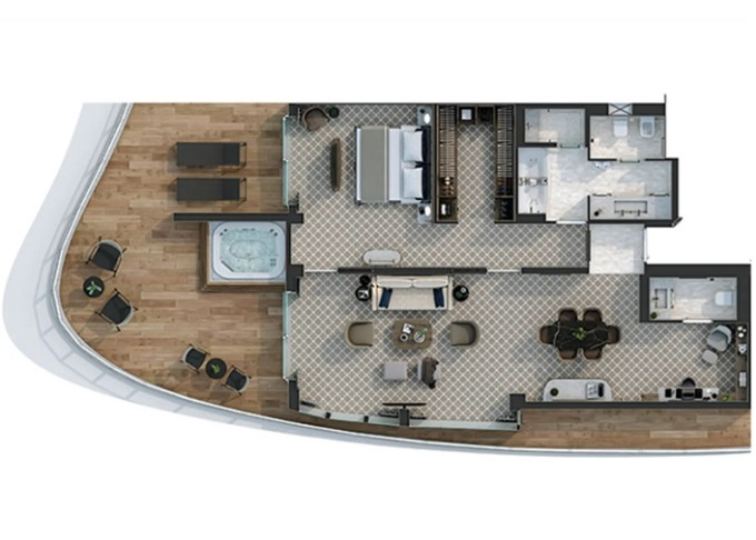 | O1 - Owner's 1 Suite 98 m² (vrátane balkóna 16 m²), spálňa, oddelená obývacia a jedálenská časť | 982 490 Kč 491 245 Kč za osobu | ||