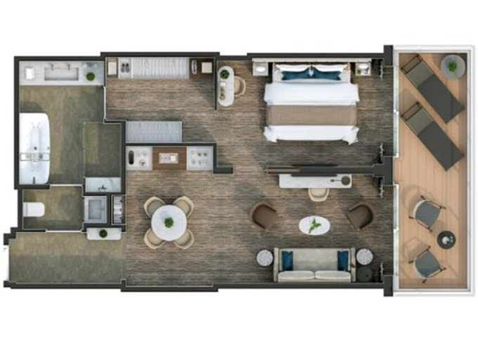 | O1 - Owner's 1 Suite 98 m² (vrátane balkóna 16 m²), spálňa, oddelená obývacia a jedálenská časť | 982 490 Kč 982 490 Kč za osobu | ||