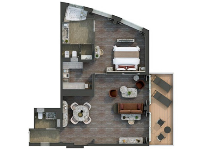 | G1 - Grand 1 Suite 85 - 119 m² (vrátane balkóna 13 -18 m²), spálňa, oddelená obývacia a jedálenská časť | 852 821 Kč 852 821 Kč za osobu |