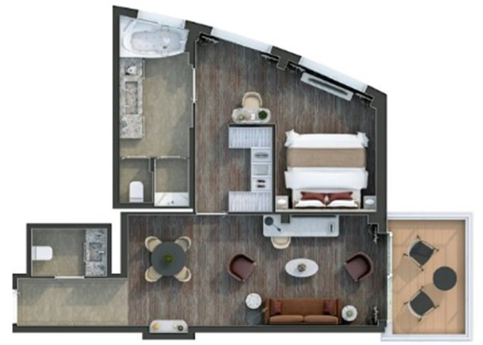 | ME - Medallion Suite 49 m² (vrátane balkóna 8 m²), spálňa s obývacou časťou (bočné umiestnenie) | 598 471 Kč 598 471 Kč za osobu |