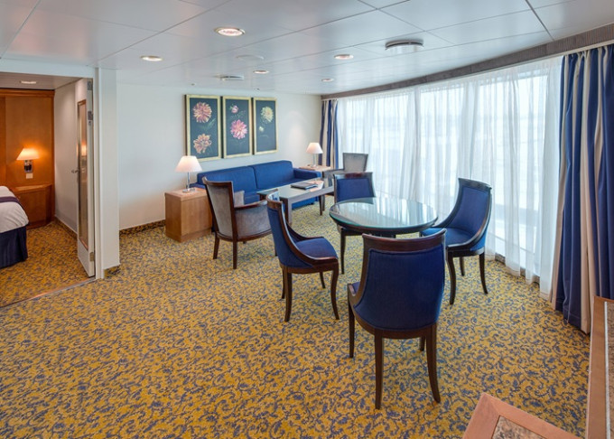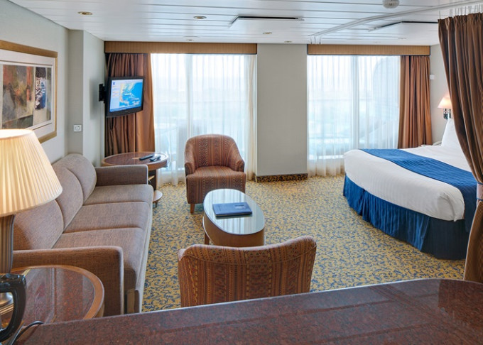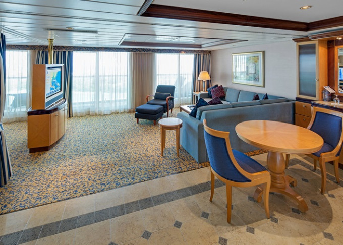 | VT - Ocean View Suite / 2 ložnice (bez balkonu) 54 m². Velké neotevíratelné okna. Výhody Royal Suite Class. 10. paluba. Max 8 osob. | 102 812 Kč 102 812 Kč za osobu |
