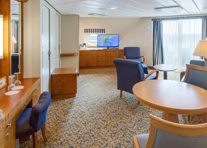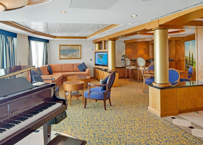 | RS - Royal Suite s balkonem 102 m² / balkon 10 m². Výhody Royal Suite Class. 10. paluba. Max 4 osoby. | 273 726 Kč 91 242 Kč za osobu | ||