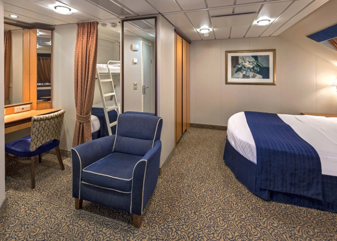 | J3 - Junior Suite s balkonem 27 m² / balkon 4 m². Výhody Royal Suite Class. 10. paluba. Max 4 osoby. | 102 613 Kč 102 613 Kč za osobu | ||