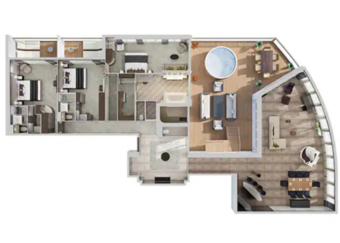 | H2 - The Haven Deluxe Owner's Suite 136 m² / balkon 45 m². Výhody The Haven. 18. paluba vpředu. Max 6 osob. | 372 748 Kč 186 374 Kč za osobu |