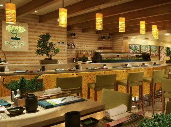- plná penze v hlavních restauracích Main Dining Room, v 24/7 bufetových restauracích Lido a v 24/7 pizzerii