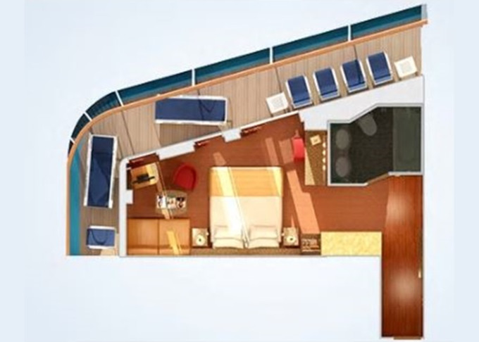 | 8N - Kajuta s větším balkonem Aft-View - výhled dozadu. 17 m² / balkon 5,5 m². Vzadu. | 58 351 Kč 29 175 Kč za osobu |