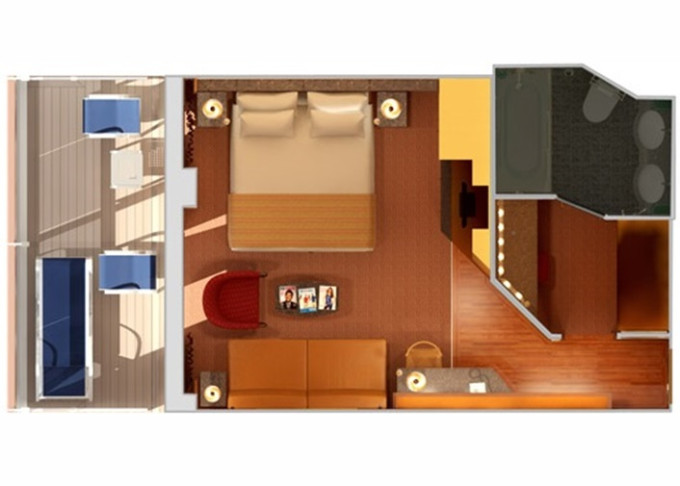 | 8J - Kajuta s větším balkonem 17 m² / balkon 5,5 m². | 57 004 Kč 28 502 Kč za osobu | ||