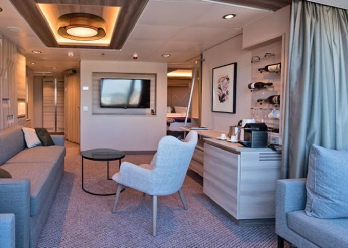 | MF - Corner Expedition Suite 22 m². Panoramatické neotevíratelné okno, TV, minibar, župan, kávovar, varná konvice, káva/čaj. | 533 238 Kč 266 619 Kč za osobu | ||