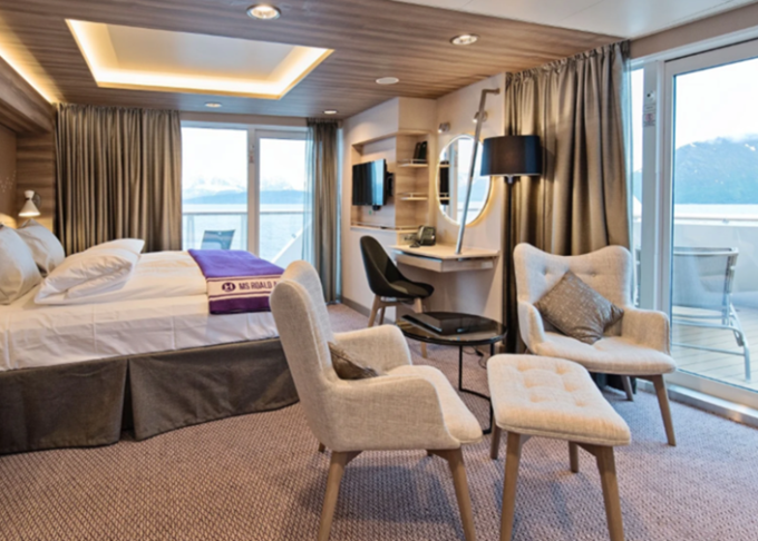 | MD - Expedition Large Suite s balkonem 35 m². Balkon. TV, minibar, varná konvice, kávovar, župany. ♿ | 633 781 Kč 316 891 Kč za osobu | ||