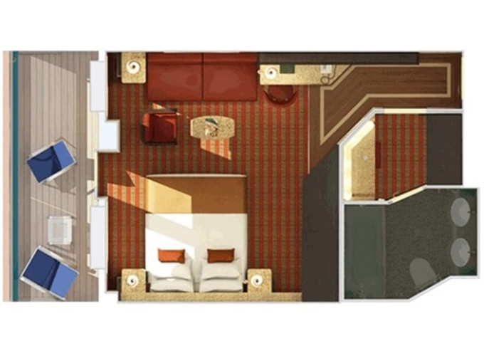 | 8N - Kajuta s větším balkonem Aft-View - výhled dozadu. 17 m² / balkon 5,5 m². Vzadu. | 71 567 Kč 35 784 Kč za osobu | ||