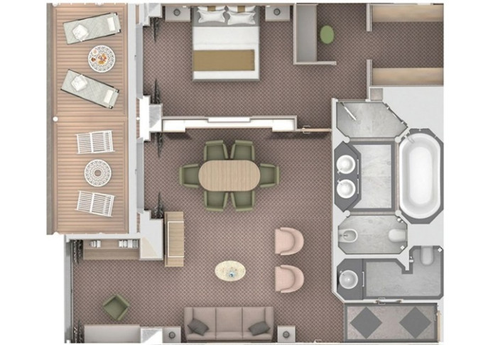 | SV - Superior Veranda Suite 36 m² / balkon 6 m². Vyšší paluby. Ložnice s obývací částí. | 331 653 Kč 331 653 Kč za osobu |