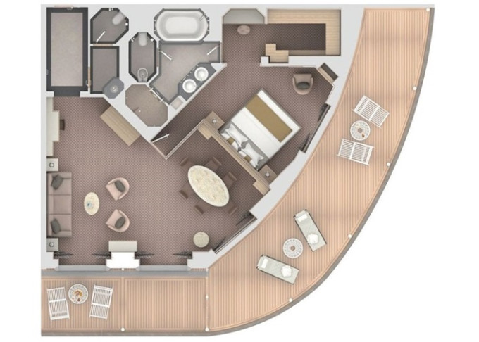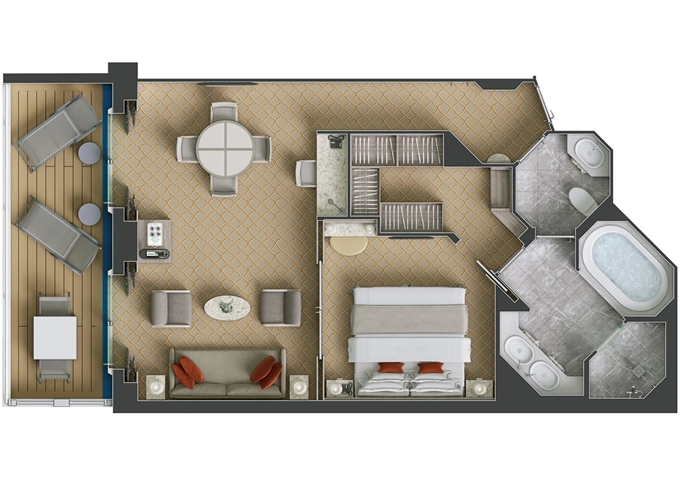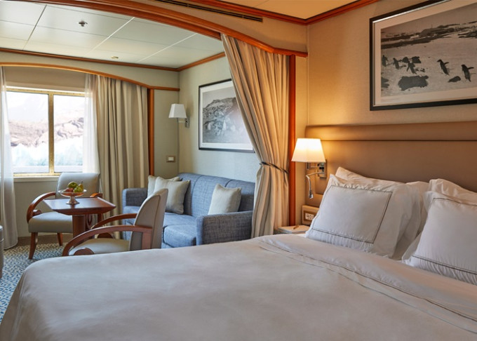 | SV - Superior Veranda Suite 36 m² / balkon 6 m². Vyšší paluby. Ložnice s obývací částí. | 354 095 Kč 177 048 Kč za osobu | ||