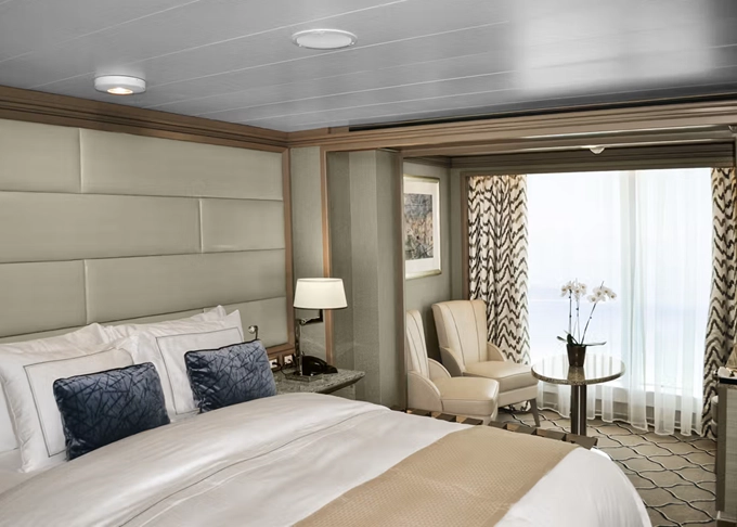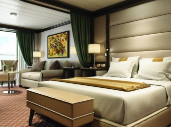 | VI - Vista Suite s oknem 32 m². Panoramatické neotevíratelné okno. 4. paluba. Ložnice s obývací částí. | 299 236 Kč 299 236 Kč za osobu | ||