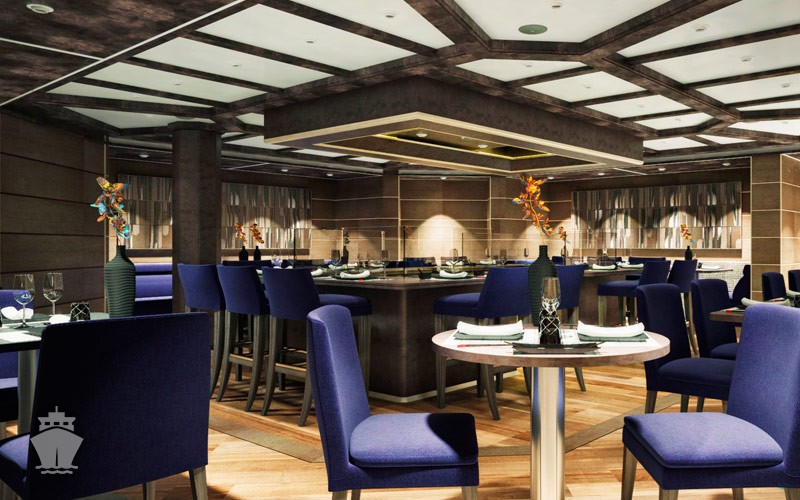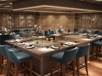 - Kaiseki - japonská restaurace, inspirovaná 5 základními prvky japonské kuchyně, s ohledem na rovnováhy yin a yang. Důraz na bezchybnou přípravu a nádhernou prezentaci každého chodu. presentation. Během dne výběr sushi, sashimi a jiné raw asijské jídla, večer i teppanyaki. Dress code: neformální. Příplatek $ 60. Nutná rezervace.