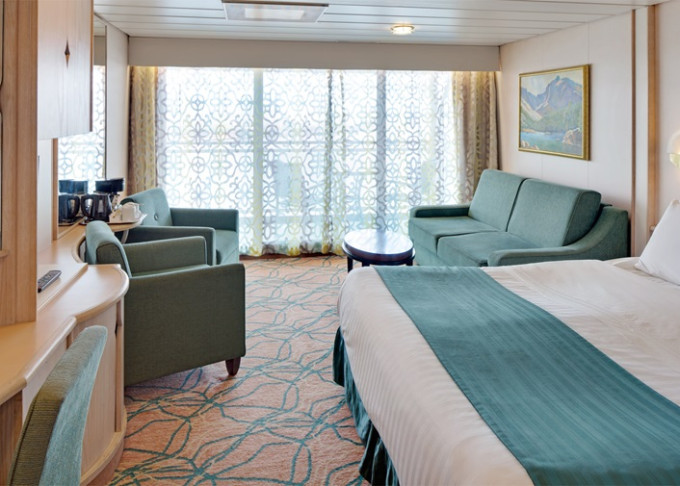 | VO - Ocean View Suite (bez balkonu) 44 m². Panoramatické neotevíratelné okna. Výhody Royal Suite Class. 8. paluba. Max 6 osob. | 119 993 Kč 59 997 Kč za osobu | ||