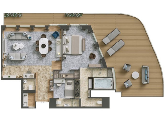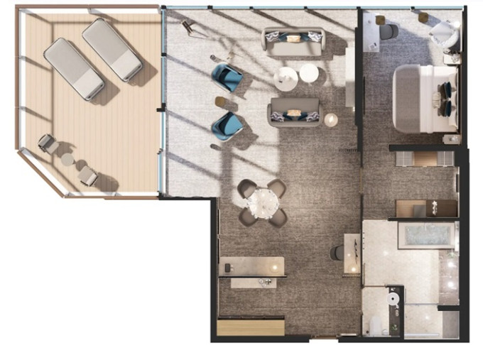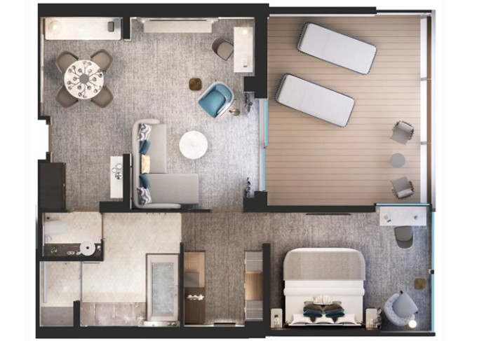 | G1 - Grand 1 Suite 155 m² / veranda 64 m². Ložnice, oddělená obývací část a jídelna. | 1 770 477 Kč 885 239 Kč za osobu |
