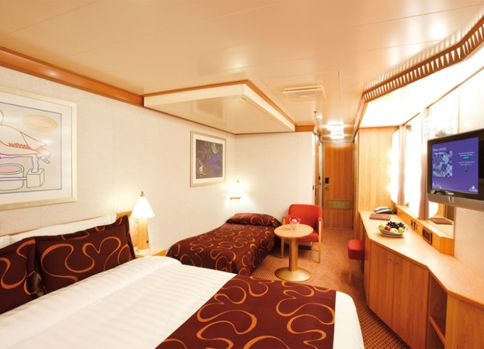 | E2 MyCruise - Kajuta s oknem 14 m². 1, 6, 7. paluba. Neotevíratelné okno. | 72 191 Kč 14 438 Kč za osobu | ||