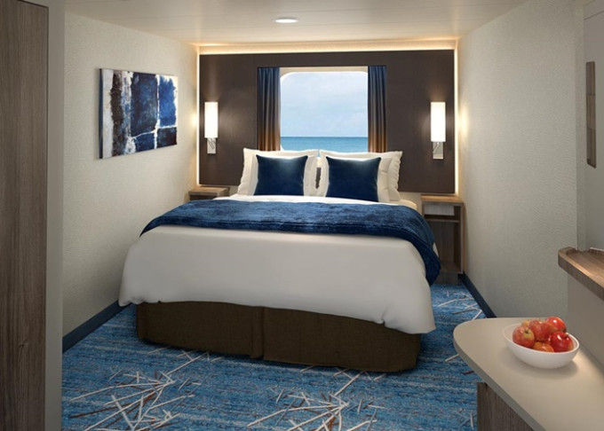 koupelna se sprchou a WC, 2 lůžka, v některých kajutách možnost přistýlek, toaletní stolek, úložné prostory, interaktivní TV, sejf, telefon, vysoušeč vlasů.