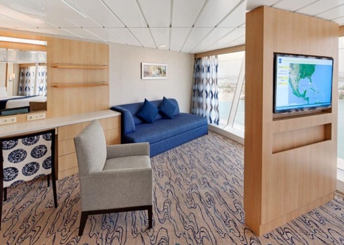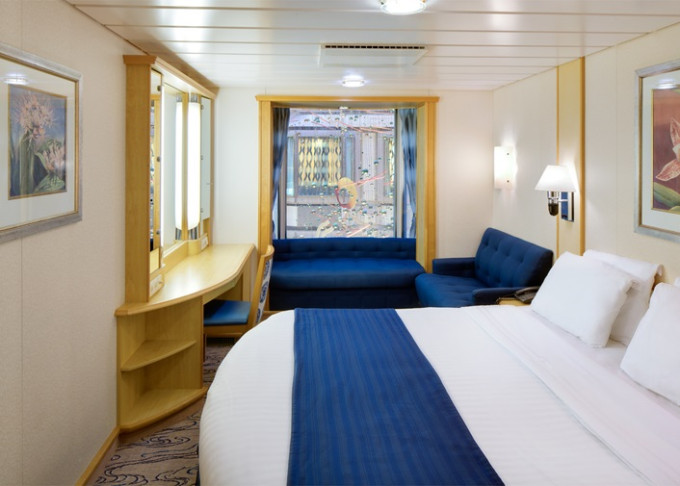 | VP - Ocean View Panoramic Suite (bez balkonu) 37,5 m². Celoplošné neotevíratelné okna. Výhody Royal Suite Class. Výhody Royal Suite Class. 12. paluba. Max 6 osob. | 164 804 Kč 54 935 Kč za osobu | ||