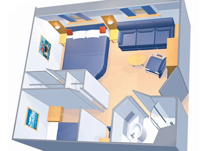 | VP - Ocean View Panoramic Suite (bez balkonu) 37,5 m². Celoplošné neotevíratelné okna. Výhody Royal Suite Class. Výhody Royal Suite Class. 12. paluba. Max 6 osob. | 147 623 Kč 73 811 Kč za osobu | ||
