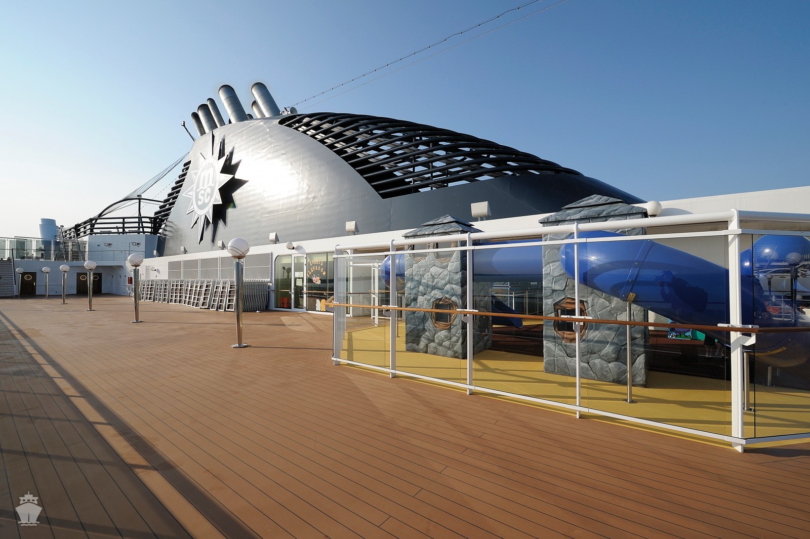 - sportovní aktivity na otevřených palubách (jogging, basketbal, fotbal, tenis), bazény a lehátka