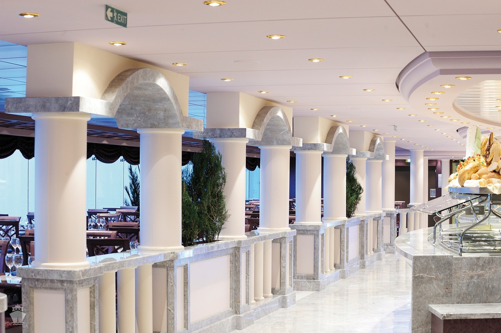 - ubytování v plně vybavené kajutě: vlastní koupelna se sprchou a WC, interaktivní TV, telefon, trezor, vysoušeč vlasů, regulovatelná klimatizace, minibar (za poplatek), Wi-fi (za poplatek)