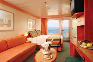 • Kajuty s balkónem jsou oázou soukromí s výhledy na moře.