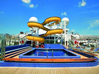 • otevřený bazén na horní palubě, 1 bazén s posuvnou prosklenou střechou, bazének pro děti