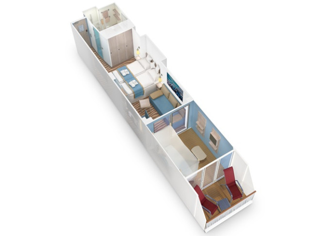 | VC - Kajuta s verandou Komfort PREMIUM 17,5 m²/ balkon 5,5 m². Cenový model Premium. Max 4 osoby. | 86 280 Kč 43 140 Kč za osobu | ||