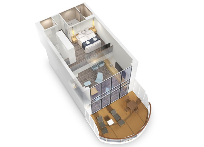 | SD - Suita na přídi s terasou PREMIUM 51 m² / terasa 17 m². Max 4 osoby. | 183 531 Kč 91 766 Kč za osobu | ||