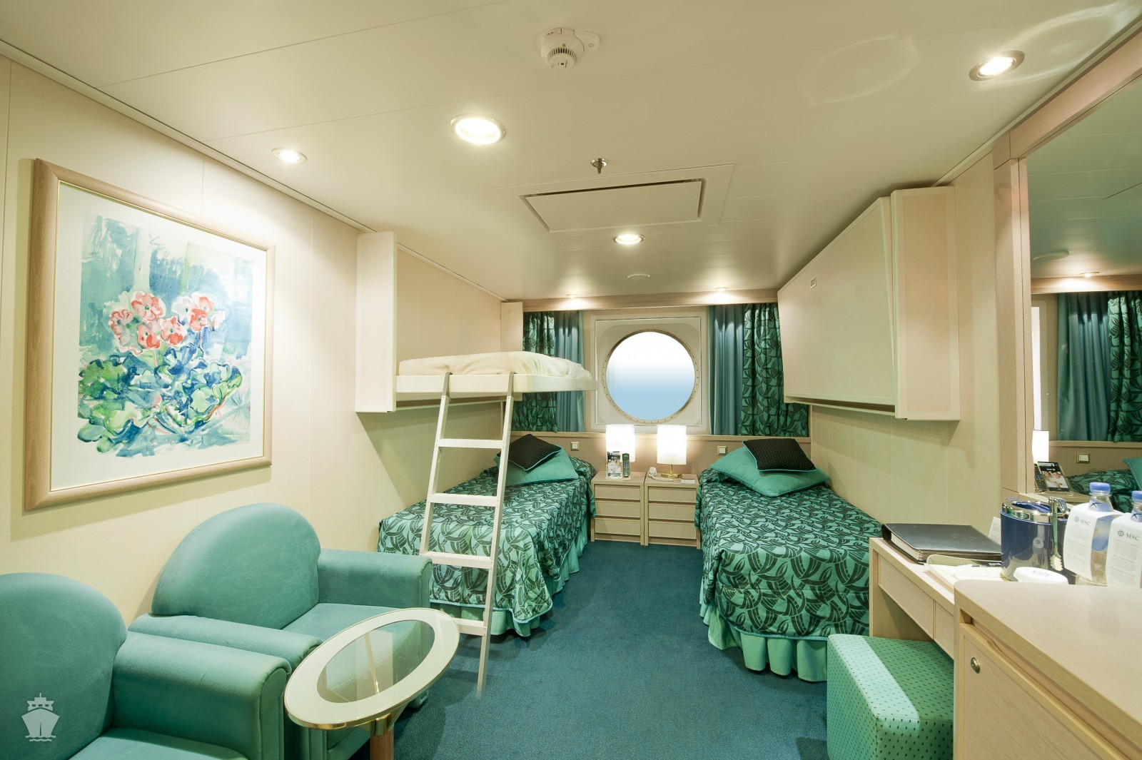 Kajuta vnitřní: 13 m², kajuta s manželskou postelí (na požádání 2 oddělené postele) a 1-2 vyklápěcí horní lůžka. Klimatizace, koupelna se sprchou a WC, toaletní stolek, skříň, interaktivní TV, minibar, sejf, telefon, vysoušeč vlasů.