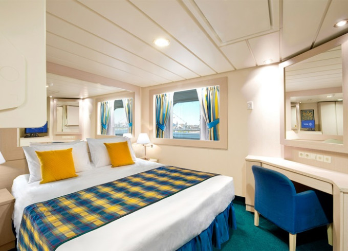 - ubytování v plně vybavené kajutě: vlastní koupelna se sprchou a WC, interaktivní TV, telefon, trezor, vysoušeč vlasů, regulovatelná klimatizace, minibar (za poplatek), Wi-fi (za poplatek)
