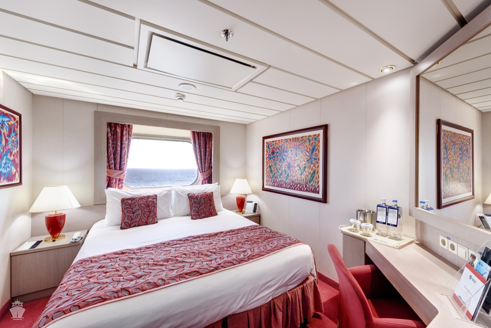 Kajuta oknem: 13 m², kajuta s manželskou postelí (na požádání 2 oddělené postele) a 1-2 vyklápěcí horní lůžka. Klimatizace, koupelna se sprchou a WC, toaletní stolek, skříň, interaktivní TV, minibar, sejf, telefon, vysoušeč vlasů, neotevíratelné okno. Některé kajuty v kategorii venkovní Bella a Junior Ocean mají omezený výhled.