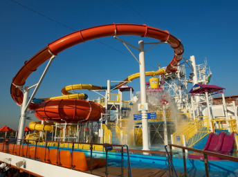• využívání fitness centra, sauny, běžecké dráhy, bazénů, vířivek, tobogánů a vodního parku (na vybraných lodích), minigolf, basketbal, volejbal, stolní tenis, knihovna