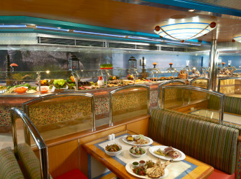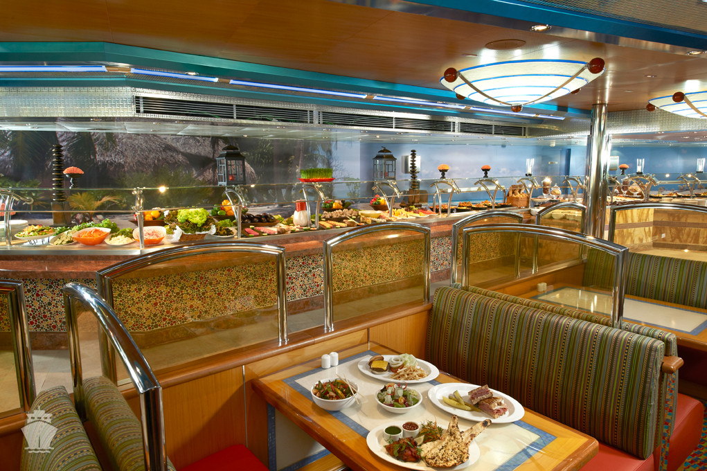 • plná penze v hlavních restauracích Main Dining Room, v 24/7 bufetových restauracích Lido a v 24/7 pizzerii