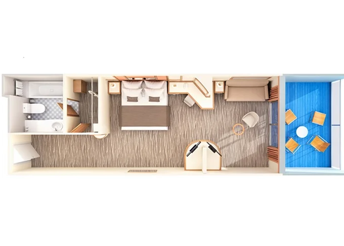 | 8M - Kajuta s větším balkonem Aft-View 21,5 - 25,5 m² (včetně balkonu). 8, 9, 10. paluba. | 33 365 Kč 16 682 Kč za osobu | ||
