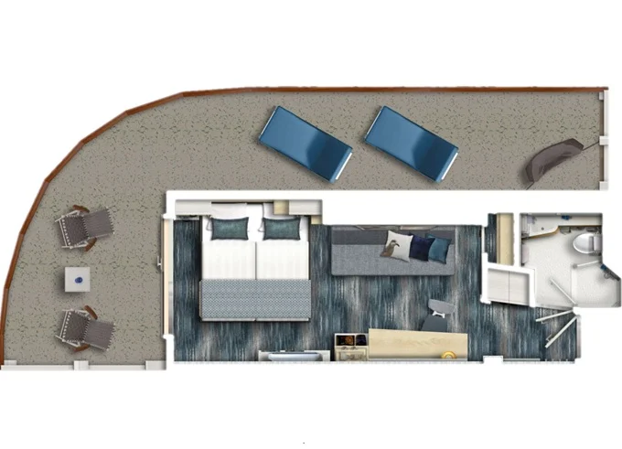 | VEPO - Kajuta s terasou Premium 17 m² + balkon 30 m² s houpací sítí a lehátky. 7-11. paluba. Max 3 osoby. | 178 145 Kč 178 145 Kč za osobu | ||