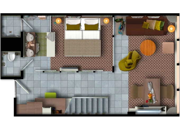 | SUHO - Himmel & Meer Suite 40 m² + prekrytá terasa 29 m² v patře se stolem, lehátky a s houpací sítí. Ložnice s obývací částí a jedálenským kútom. 15. paluba. Max 4 osoby. Výhody Suite. | 771 729 Kč 257 243 Kč za osobu |