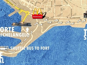 Přístav je od města Civitavecchia vzdálený cca 1,2 km. Ti, kteří se rozhodnou zůstat v přístavním městě, mohou se k centru Civitavecchia dostat pěšky, případně mohou využít i bezplatný kyvadlový autobus, který je zaveze k výjezdu z přístavu.